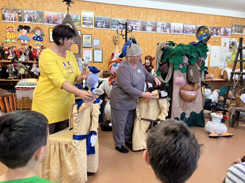 Day Four was spent at the “ČIZ” Puppet Theatre in Bajorai (Rokiškis district). During an educational session, the children discovered how puppet shows are created and how much imagination and craftsmanship it takes to bring puppets to life. They toured the theatre, tried controlling the puppets themselves, and watched a cheerful performance, “The Dog Who Couldn’t Bark”. Inspired by what they saw, they later crafted their own small yarn puppets — each unique and imaginative. Everyone returned to the library full of inspiration and good spirits.