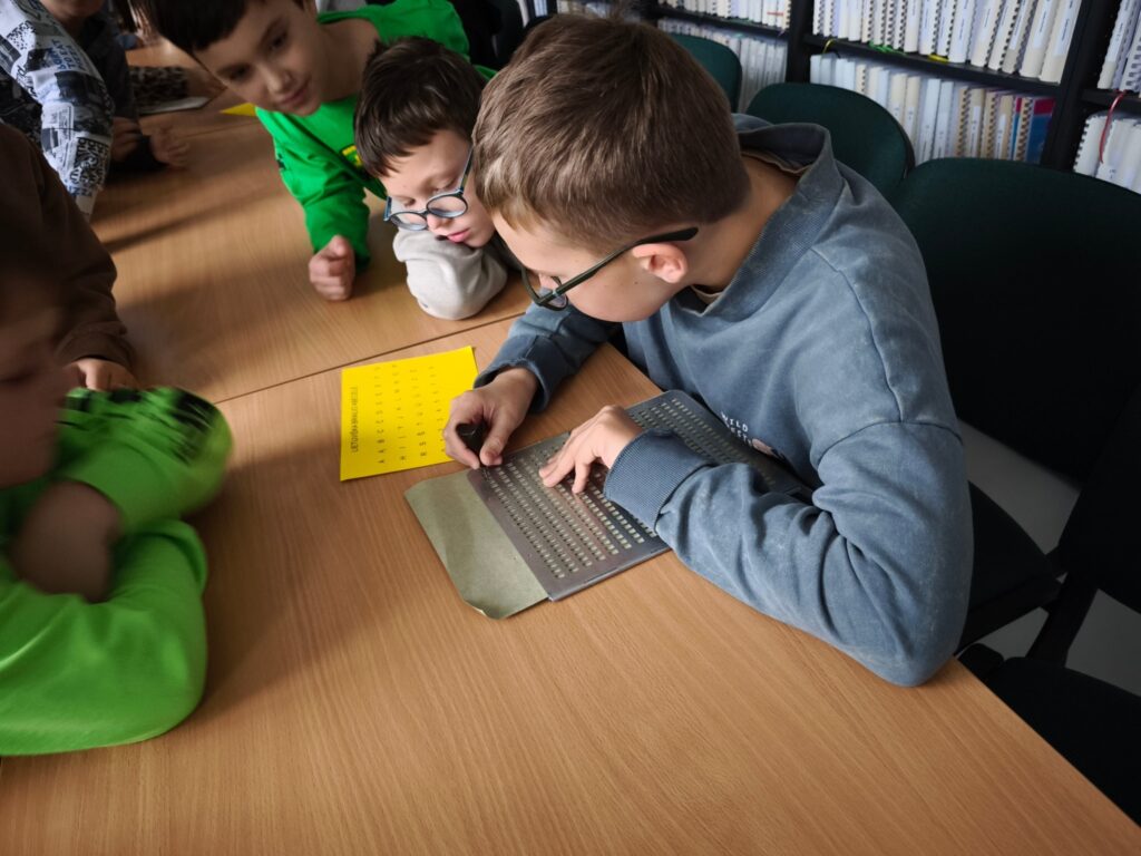 Day Three took place at the Panevėžys branch of the Lithuanian Audiosensory Library. The children learned about the history of Braille, how it was adapted for use in Lithuanian, and how books are printed in Braille today. During the creative workshop, they even wrote short texts using Braille writing tools.