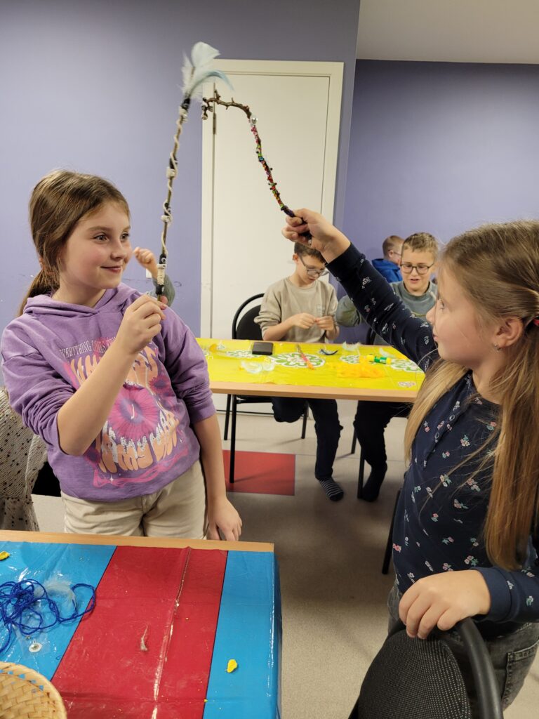 Day One was dedicated to Harry Potter. The library turned into a magical world — the Sorting Hat divided the participants into four Hogwarts houses. The children designed their own emblems, invented fantastic creatures with special powers, and played an exciting Kahoot quiz about Harry Potter. Later, they went on a treasure hunt around the library, writing invisible clues and searching for hidden treasures. The day ended with a creative workshop where everyone made and decorated their own magic wands.