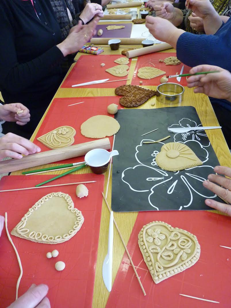 At the end of April 2017, three librarians from Slovenian Public library Ivan Tavčar Škofja Loka visited our sister Panevėžys district municipality public library in Lithuania to exchange experiences and held a workshop for our colleagues in Lithuania. We thought we could show our collegues a bit of Slovenian tradition. We decided to make Dražgoše honey breads – breads named after the highland village of Dražgoše, which is located in our region. This bread is made of thick honey dough, with spices which give them some extra special taste, and they are traditionally given as presents.