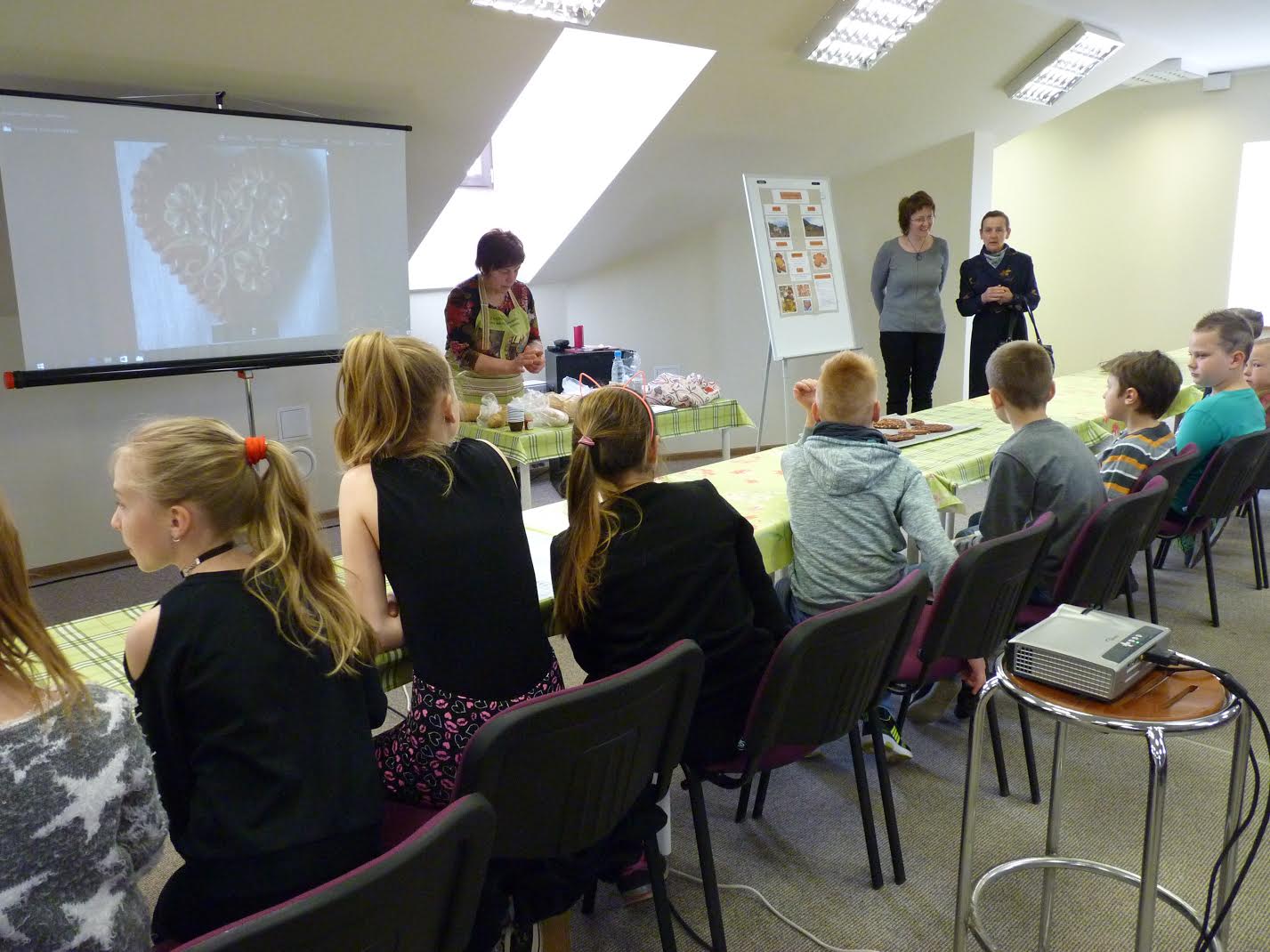 The next day we visited Kedainiai, one of the oldest Lithuanian towns. We had the tour over Kedainiai district municipality Mikalojus Daukša public library, exchanged experiences, saw some nice exhibitions (the most impressive was the exhibition of books for blind children) and held the workshop od Dražgoše honey breads again, but this time for the children. They had fun making traditional breads, which we baked in the bakery nearby. Baked breads have so nice smell that many children couldn’t resist, so they ate them immediately. After a stroll over the beautiful historical town, we said goodbye to our colleagues and the headmaster Birute Ruzgiene and left with agreement that we will definitely cooperate again in the nearest future.